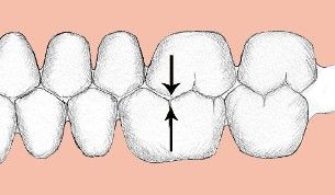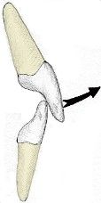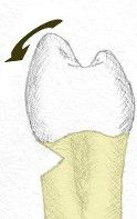 When many teeth are lost, especially in the posterior part of the mouth, patients begin to bite more and more heavily on the anterior teeth. Anterior teeth, however, do not have the shape to take the great forces the chewing muscles generate. The illustration to the right shows how the inside surface of the upper front tooth is an inclined plane and the how excessive forces can move the tooth outward.