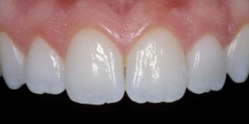Procera Brand Crowns are a non-metallic substructure crown that boast strength and high esthetics. The patented process for fabricating the substructure of the tooth involves milling a coping with 3D CAD/CAM technology. This coping, an underlayer for the porcelain which makes up the bulk of the crown, is milled larger than needed. Then during a firing process this coping shrinks to exactly the size needed to fit the prepared tooth with precision. This firing and shrinking process makes an incredibly hard, non-metallic base to build the tooth-like porcelain on. One of the crowns on the young central incisors to the right are a Procera crown--can you tell which one?
