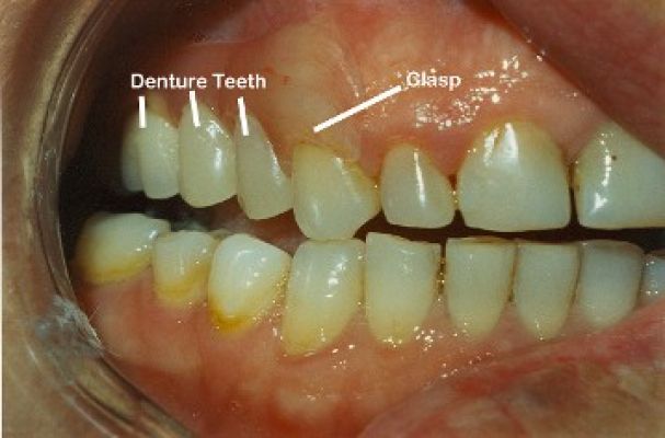 This removable partial denture--or RPD--is a more esthetic alternative to a conventional metal/resin RPD. On cases such as that shown, a metal clasp on the first premolar or canine tooth would prove to be unsightly. The Valplast denture is not only more esthetic, but it is constructed out of a proprietary material that makes the denture flexible. This property makes it more comfortable and virtually unbreakable. Ask if this type of denture might be for you. This unique material can also be used in combination with a metal frame to make a hybrid denture that has esthetics, stability and support.